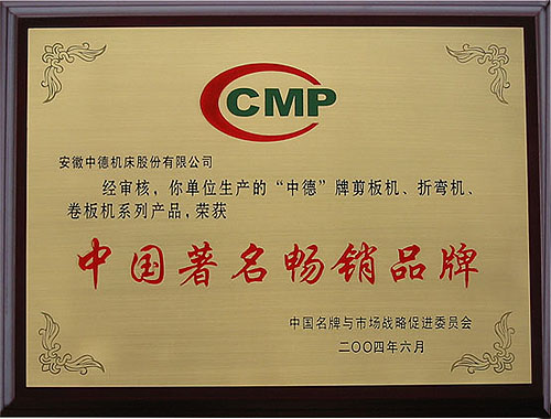 我公司生產(chǎn)的“中德”牌剪板機(jī)、折彎?rùn)C(jī)、卷板機(jī)等產(chǎn)品由于質(zhì)量穩(wěn)定、市場(chǎng)美譽(yù)度高在本次活動(dòng)中一舉當(dāng)選。(證書編號(hào):2004MP398)