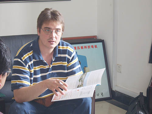 2005年7月26日上午,波蘭Projprzem Eko公司生產(chǎn)部總經(jīng)理米奧蘇華先生等一行來我公司參觀考察,米奧蘇華先生此行來我公司主要是洽談采購數(shù)控折彎機(jī)、剪板機(jī)事宜,考察中對我公司的產(chǎn)品表示非常滿意!