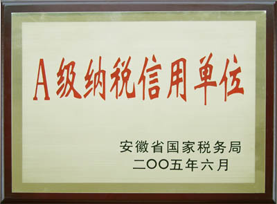 我公司被安徽省國稅局評為“A級納稅信用單位”