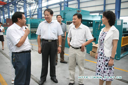 公司董事長鄭長玉向領導一行匯報了中德的發(fā)展歷程及目前的發(fā)展狀況。重點介紹了我公司在車間管理和質量監(jiān)督體制方面的完善工作,并從目前的發(fā)展局勢展望更好的發(fā)展前景。王司長也關切地向公司領導了解一些機器方面的情況,在聽到鄭董事長匯報說中德不會因目前的成績而有絲毫懈怠時,王司長滿意的點了點頭。參觀過大型裝配車間后,領導一行來到了成品車間,擺放在這里的一臺雙機聯(lián)動數(shù)控折彎機迅速地吸引了大家的眼球,鄭董事長向領導介紹說這臺機器已經(jīng)經(jīng)過商檢并即將發(fā)往波蘭并非常自豪地說這位波蘭客商正是看中了中德的實力才會放心的與我們合作。隨后公司總經(jīng)理鄭小平向領導介紹了目前中德的國外代理點及國外銷售情況,表示中德還有非常大的外貿發(fā)展空間。